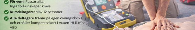 HLR-utbildning med hjärtstartare och Första hjälpen för företag. Lär er agera vid hjärtstopp, olyckor och akuta situationer – på plats hos er.
