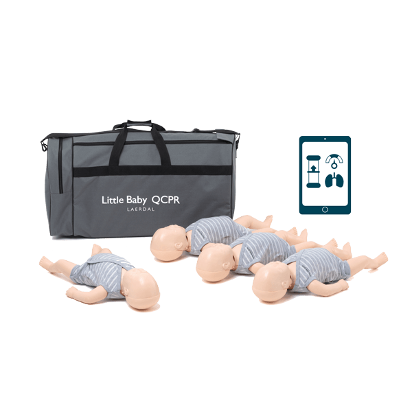 Little Baby QCPR är 4 st realistiska och prisvärda spädbarnsdockor för HLR & Första Hjälpen (BLS-dockor) inom pediatrik.